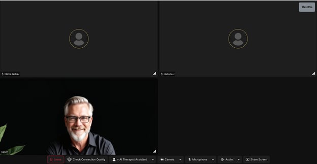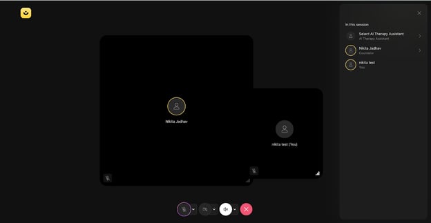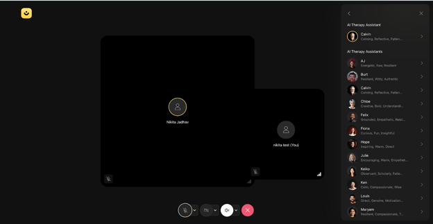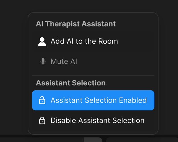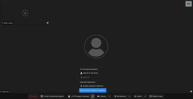 You can mute or remove the AI Companion from the room by clicking the "+AI Therapist Assistant" button at the bottom of the screen.