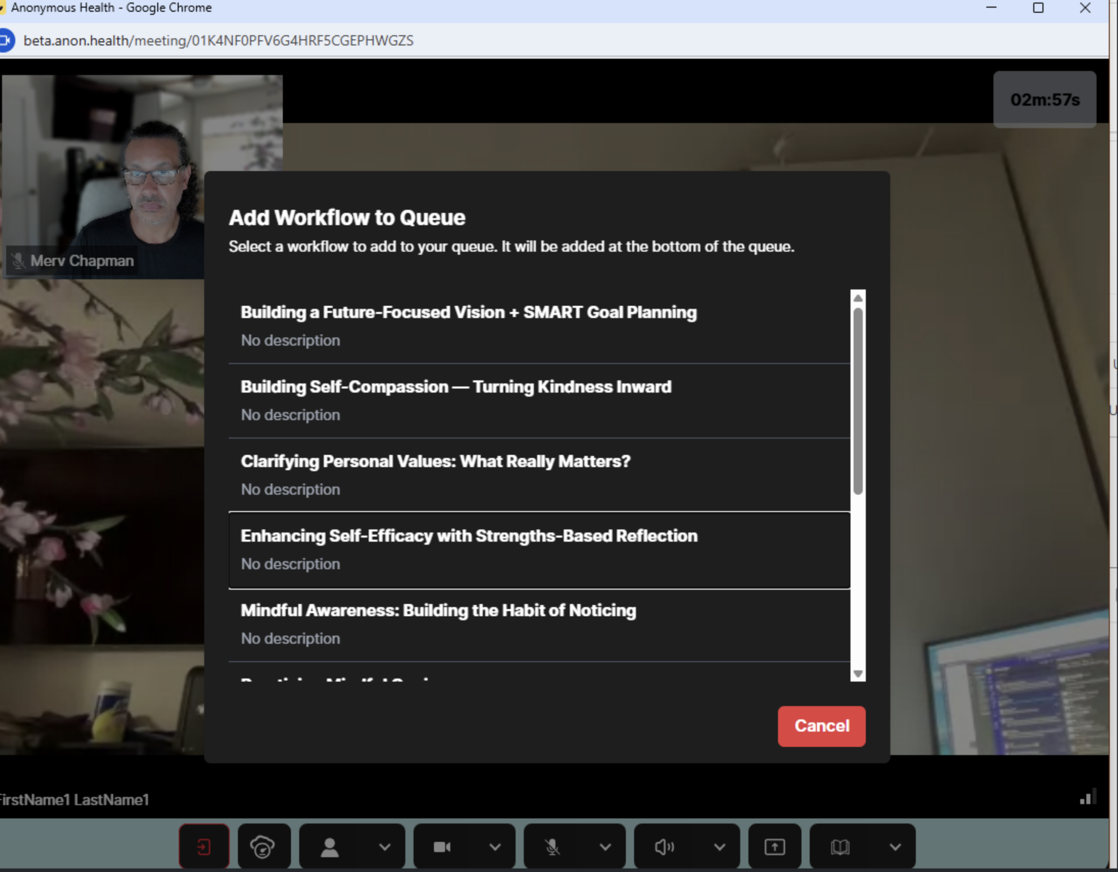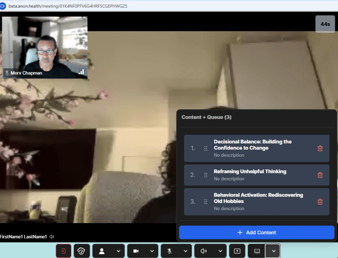 - As a Clinician on an Active AI Hybrid Session, Select the Book/ Library Icon at the bottom right of the Session Window: