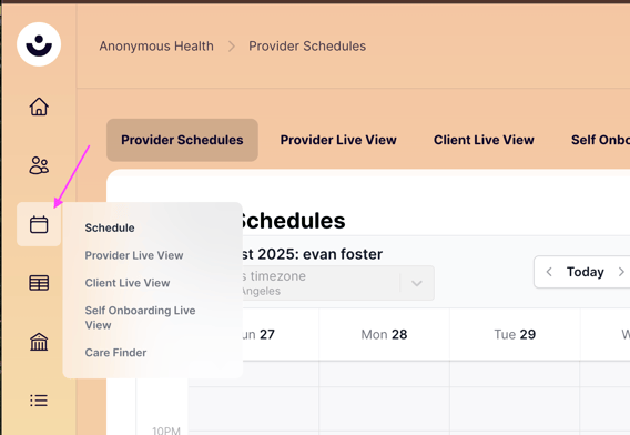 In the CTA, click on the Schedule tab on the left side of your screen.