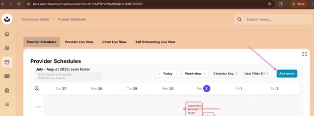CTA, Counselor, Clinician, Scheduling, Schedule, Appointment, Add Event, Provider Portal