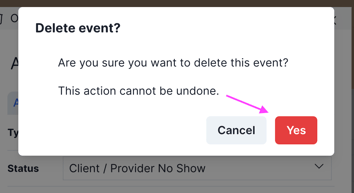 A confirmation prompt will appear. Click the red "Yes" button to successfully delete the appointment.