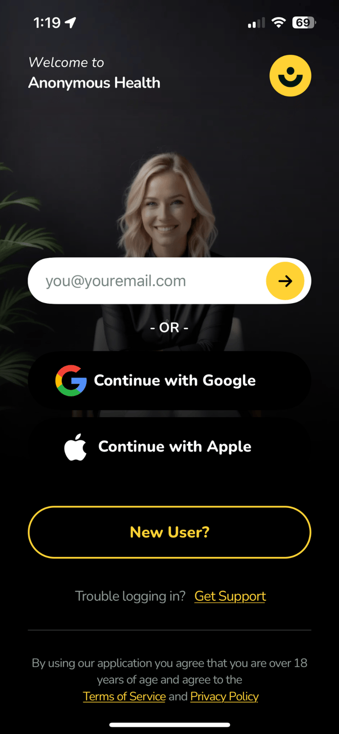 - Successfully download the Anonymous Health Mobile App on your smartphone.