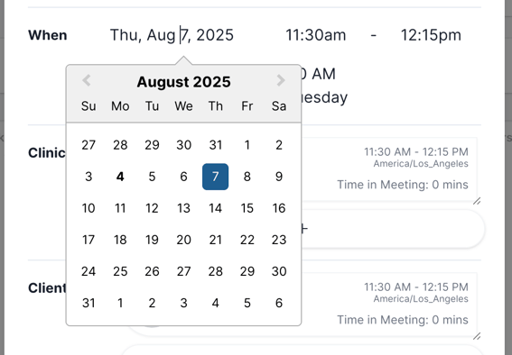Update the Date and Time: On the appointment card, go to the "When" section. Use the date and time fields to select your new desired date and time.