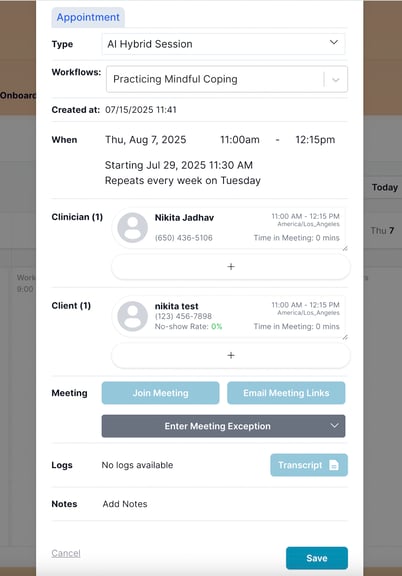Save the Changes: Click the blue Save button at the bottom of the appointment card.