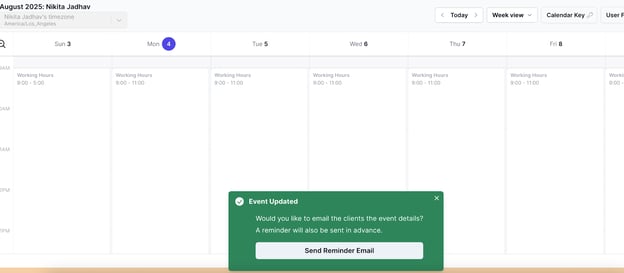 Send a Confirmation Email: Click "Send Reminder Email" to automatically send an updated appointment confirmation to the client.