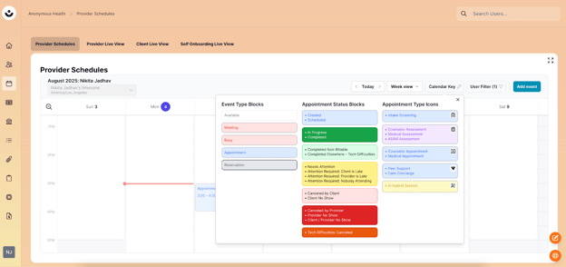 Open the Calendar Key: Click the "Calendar Key" button on the right side of the screen. A window will pop up with a list of all appointment statuses and their descriptions.
