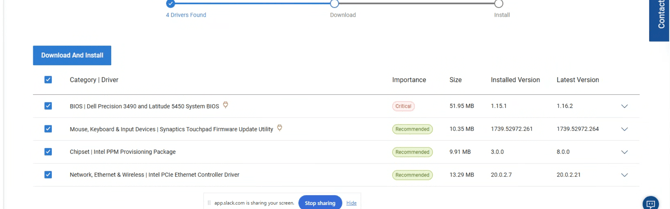 - It is recommended that all available BIOS and driver updates are selected to be downloaded and installed. e.g:
