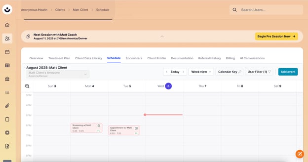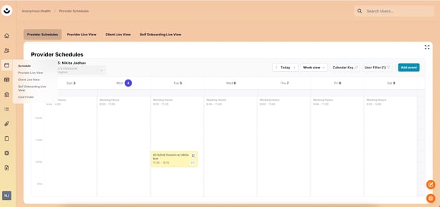 This article will guide you through using the "Schedule" tab in the CTA to view and interact with provider and client calendars.
