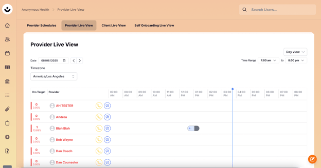 Click on the "Provider Live View" tab to see other providers' schedules.