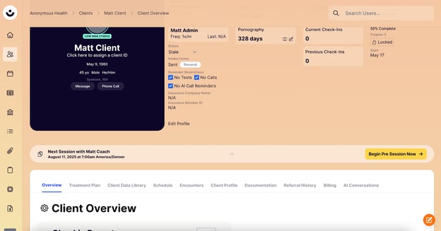 Click on a client's name from the list to go to their individual profile page.